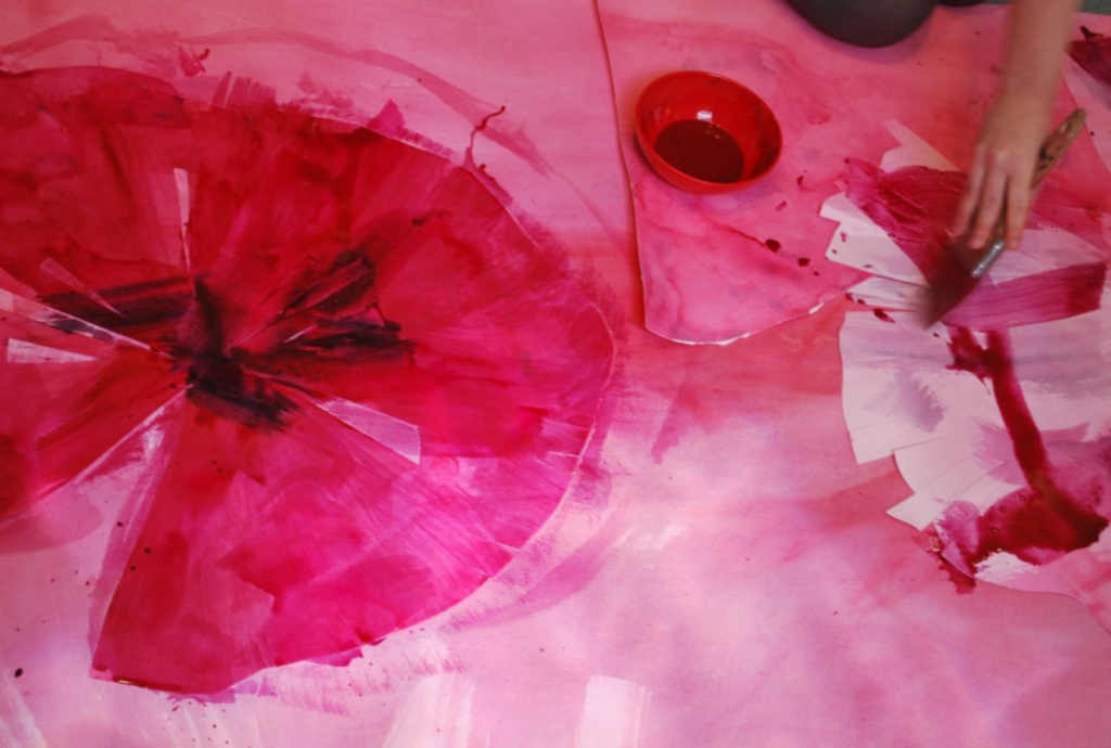 Paper flowers! This high style, mid-summer wedding was a dream, collaborating with a London based landscape architect and film composer in love! Each flower was hand painted and hung separately so every individual petal and paint stroke was illuminated as they spun over the dance floor, a revelry powered mobile …